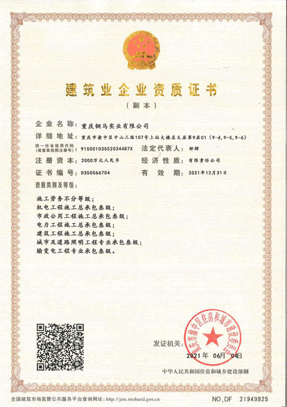 電力工程施工總承包資質(zhì)貳級市政公用工程施工總承包貳級建筑工程施工總承包貳級輸變電工程專業(yè)承包貳級城市及道路照明工程專業(yè)承包貳級承裝修試資質(zhì)貳級電力工程設(shè)計丙級資質(zhì)