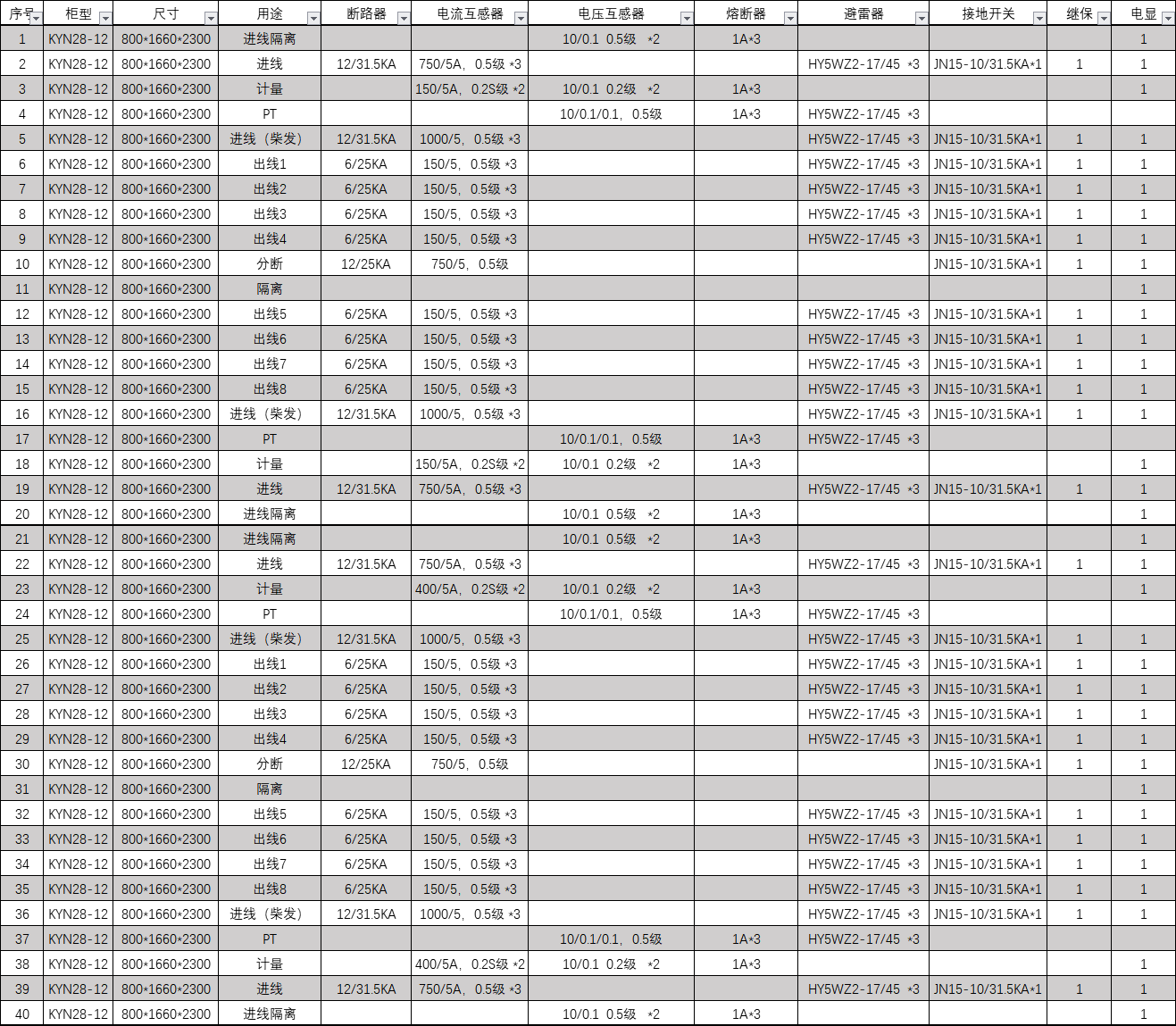 斷路器:12/31.5KA