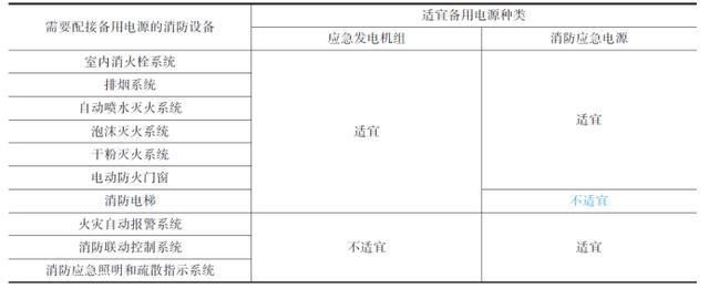 消防用電設(shè)備與適宜備用電源種類見下表。