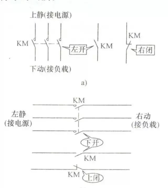 a)同一接觸器的線圈和觸頭 ?b)不同接觸器的線圈和觸頭