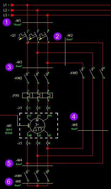 這里還約定,Q1斷路器的下端出2路線,一路到KM2,一路到KM3。