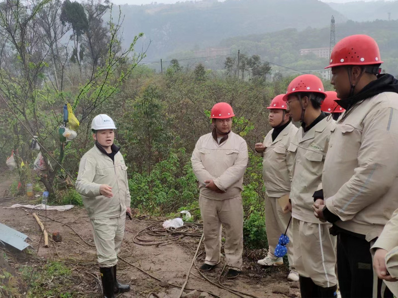 項目現(xiàn)場,項目經(jīng)理張小偉、李振、施工班長肖道軍等分別對鐵塔基礎(chǔ)開挖,安全措施、安全工具器、登高工具器、消防設(shè)施、視頻監(jiān)控等內(nèi)容進行了講解,實習生們積極提問認真學(xué)習。期間,重慶永能實業(yè)(集團)有限公司董事彭明輝蒞臨現(xiàn)場指導(dǎo)工作。