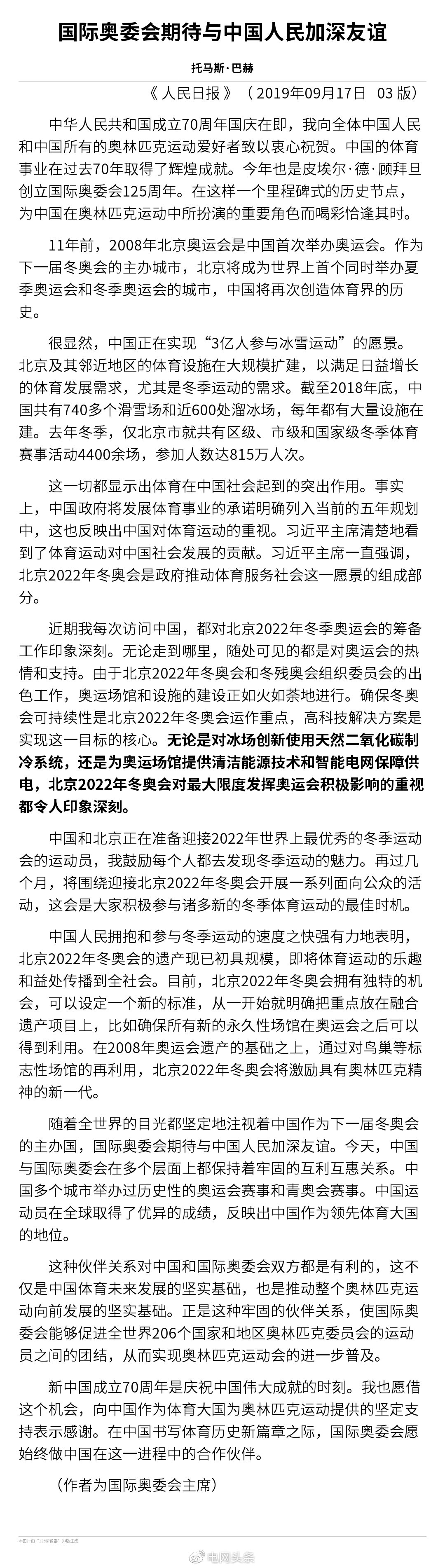 【國際奧委會主席:奧運場館清潔能源技術(shù)和智能電網(wǎng)保障,令人印象深刻】國際奧委會主席托馬斯·巴赫在《人民日報》發(fā)表署名文章,其中提到:無論是對冰場創(chuàng)新使用天然二氧化碳制冷系統(tǒng),還是為奧運場館提供清潔能源技術(shù)和智能電網(wǎng)保障供電,北京2022年冬奧會對最大限度發(fā)揮奧運會積極影響的重視都令人印象深刻。