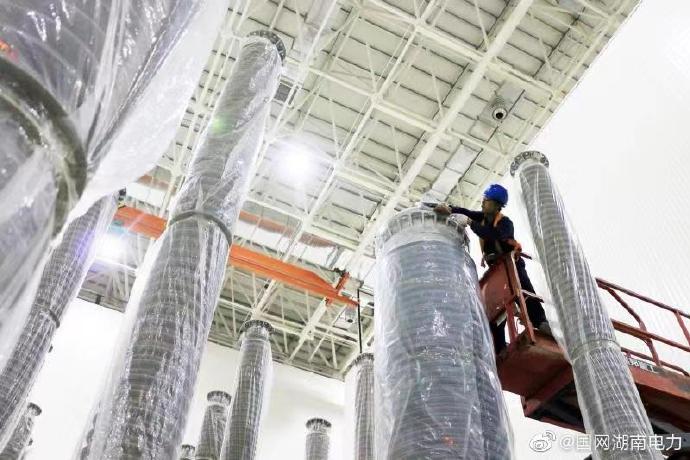 9月18日,湖南送變電公司員工在伏北±500千京換流站工程安裝直流斷路器設(shè)備。