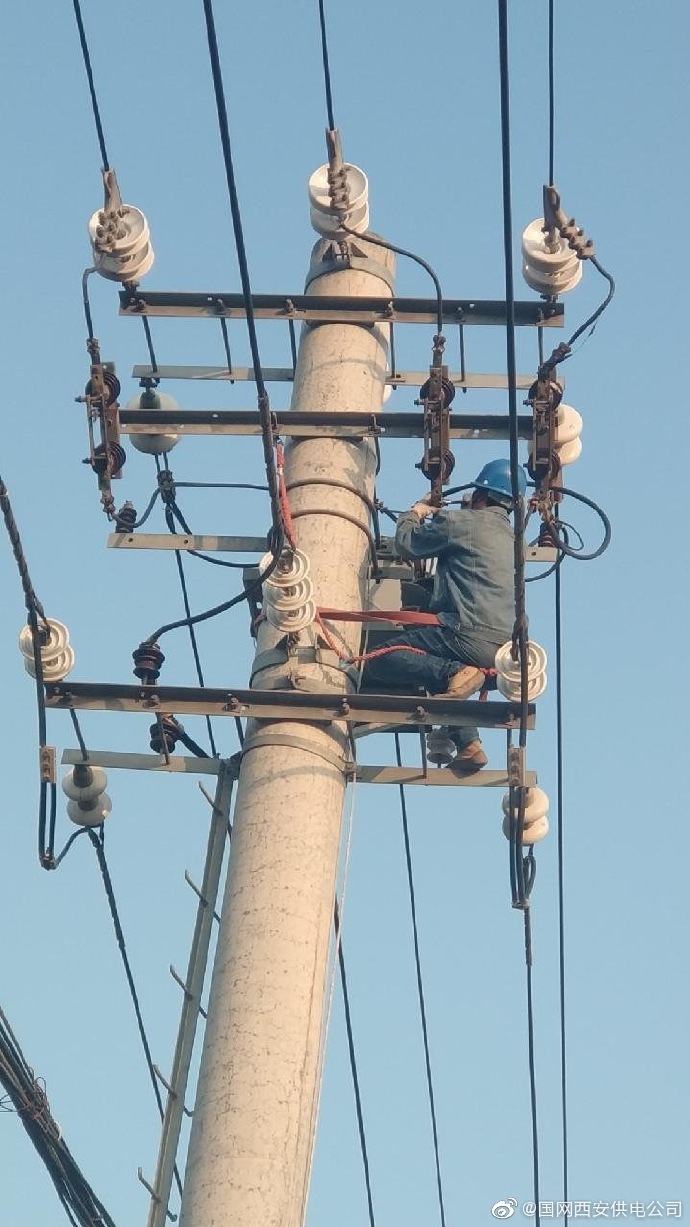 【不畏艱辛忙供電】11月3日,藍(lán)田縣華胥鎮(zhèn)152胥二線B相高壓刀閘至開關(guān)引線過負(fù)荷燒斷,導(dǎo)致線路停電。? 國網(wǎng)藍(lán)田縣供電公司運檢班立即組織搶修,最大限度減少停電時間,讓客戶用上放心電。