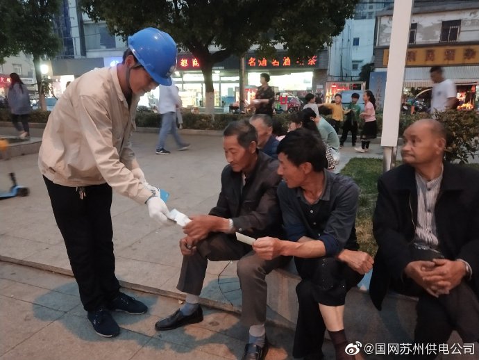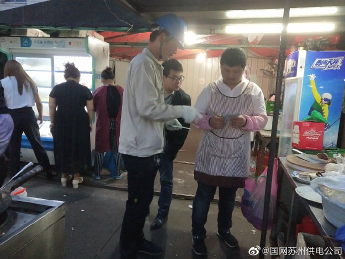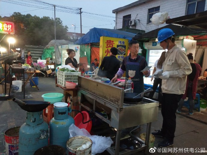 5月21日晚8點(diǎn),國網(wǎng)蘇州市吳江供電公司七都供電所工作人員在轄區(qū)內(nèi)夜市攤點(diǎn)進(jìn)行用電安全隱患排查,對發(fā)現(xiàn)問題現(xiàn)場整改,并向經(jīng)營戶發(fā)放用電安全手冊,向其講解不規(guī)范用電危害及識別劣質(zhì)電器的方法。