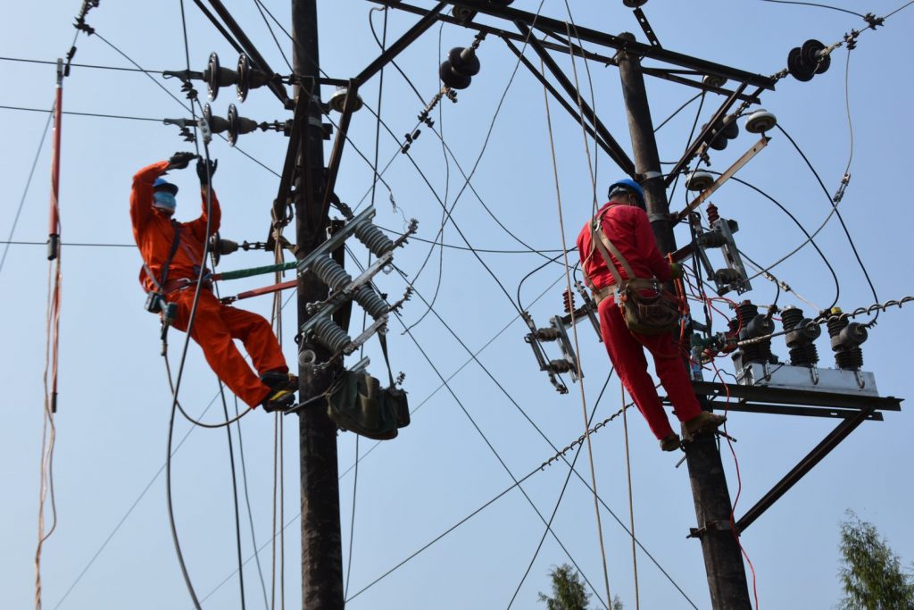 4月7日,四川南充儀隴供電公司義路供電所共產(chǎn)黨員鄒茂林、邱克宏在10千伏柳義線78號(hào)桿安裝開關(guān)。