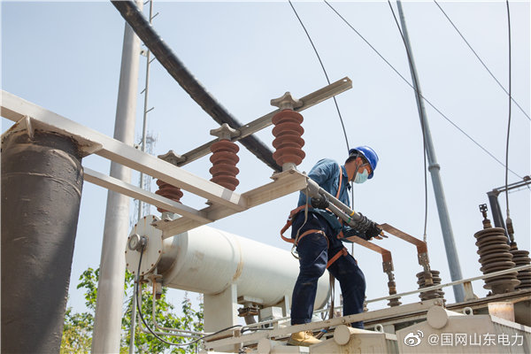 【周末忙改造,電網(wǎng)更強(qiáng)壯】5月10日,在35千伏過西變電站升級改造工程現(xiàn)場,國網(wǎng)萊州市供電公司施工人員在確保改造現(xiàn)場安全的前提下,拆除2號主變與002開關(guān)柜連接線,并通過電纜接入10千伏臨時(shí)開關(guān)柜,加快推進(jìn)改造進(jìn)度,變電站改造完成后將進(jìn)一步提高金倉街道電網(wǎng)的供電質(zhì)量。 ????