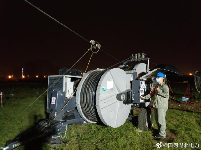 2020年5月20日深夜,武漢楊春湖畔,國(guó)網(wǎng)湖北送變電工程有限公司施工人員正在進(jìn)行220kV鋼桂一回13-D1號(hào)導(dǎo)地線(xiàn)更換工作,本次施工需跨越武漢站北出站口12條軌道,更換4基桿塔348米下相導(dǎo)線(xiàn)。至21日凌晨3點(diǎn)05分,送變電公司順利完成夜間跨越鐵路更換導(dǎo)線(xiàn)任務(wù)。他們抓住了“520”的尾巴,用汗水和堅(jiān)守對(duì)所鐘愛(ài)的城市“告白”,助力武漢建設(shè)發(fā)展。