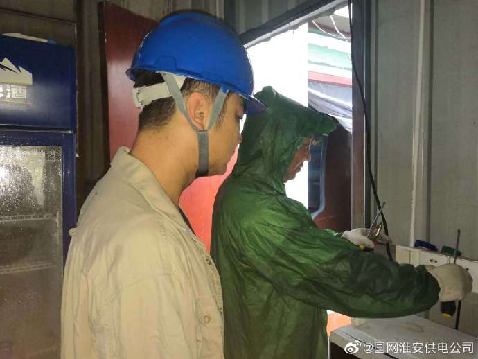 7月12日黃昏,汛雨下個不停,國網(wǎng)淮安營業(yè)部車橋供電所接到鎮(zhèn)區(qū)天兵燒烤店吳先生的報修電話。值班人員冒雨驅(qū)車來到了故障現(xiàn)場,原來出線刀閘線頭燒壞,幫助排除此故障后,又幫助更換了店內(nèi)一失靈插座。