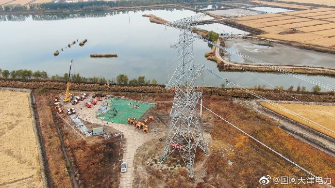 【國網(wǎng)天津建設(shè)公司:渠陽-蘆臺(tái)500千伏線路工程進(jìn)行放線作業(yè)】