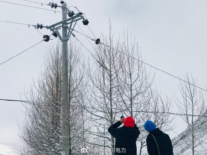 【新都橋下雪啦??電力小鉆風(fēng)又該出來巡山咯】近日,新都橋突降大雪,國網(wǎng)甘孜康定供電公司員工在新都橋鎮(zhèn)下柏桑村開展雪后巡視,重點(diǎn)巡視桿塔、線路設(shè)備覆雪等情況,確保電網(wǎng)安全穩(wěn)定運(yùn)行(陳雪茹) ????