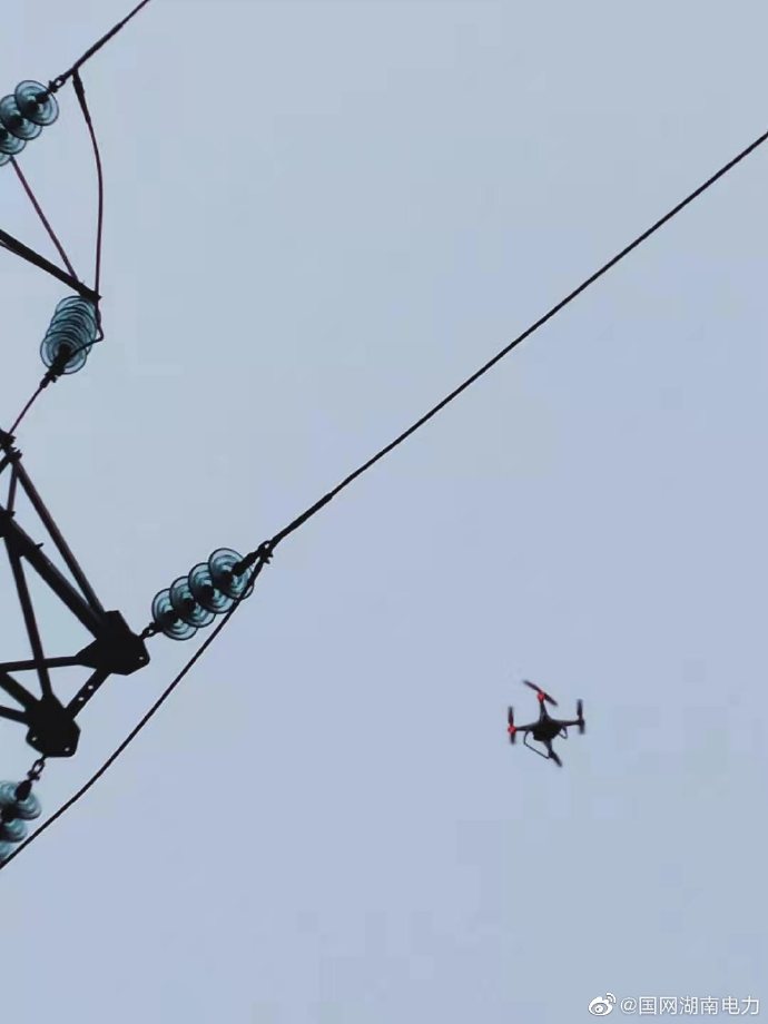 無(wú)人機(jī)巡線,隱患和缺陷 看得更清晰。1月7日下午,國(guó)網(wǎng)耒陽(yáng)市供電公司輸電運(yùn)維班班員谷海華、段文容正在操控?zé)o人機(jī),對(duì)35千伏潯東線進(jìn)行巡視,并及時(shí)詳細(xì)記錄巡視情況,為輸電線路安全可靠運(yùn)行保駕護(hù)航。(彭流久)