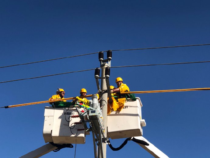 【優(yōu)化農(nóng)村網(wǎng)架結(jié)構(gòu)】 1月15日,臺(tái)州市三門縣沙柳街道的華山村附近田野上,國(guó)網(wǎng)三門縣供電公司員工開展不停電加裝智能開關(guān)工作,增強(qiáng)補(bǔ)缺沙柳街道區(qū)塊主線路,優(yōu)化供電區(qū)域的網(wǎng)架結(jié)構(gòu)。