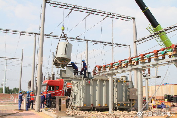 6月16日,國網(wǎng)費縣供電公司工作人員奮戰(zhàn)在110千伏許城變電站檢修現(xiàn)場,將該站2號主變設(shè)備由原50兆伏安更換為63兆伏安,提高該變電站的供電能力,為助力探沂鎮(zhèn)經(jīng)濟發(fā)展和迎峰度夏期間居民生活用電提供堅強的電力支撐。 ????