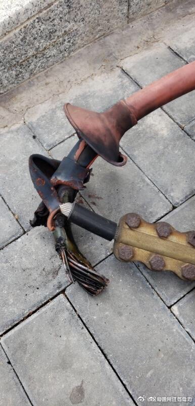 【冒高溫搶修10千伏電纜引下線燒壞故障】7月8日,國網(wǎng)徐州銅山區(qū)供電公司運維檢修部配電班人員冒高溫搶修10千伏南七124線33號桿電纜引下線燒壞故障,保障康平小區(qū)公變用電。