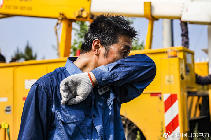 【高溫天 帶電作業(yè)太陽(yáng)之下“洗個(gè)澡”】7月10日,國(guó)網(wǎng)榮成市供電公司帶電作業(yè)班頂33攝氏度高溫,完成10千伏興裕線39號(hào)桿帶電接火任務(wù)后,兩名洗過(guò)“汗蒸”的作業(yè)人員邊擦拭不止的汗水邊笑著說(shuō):“本以為前面的兩場(chǎng)活汗都流盡了,沒(méi)想到,又‘洗了個(gè)澡’”。當(dāng)天,還有“兩場(chǎng)澡”等著他們。 ????