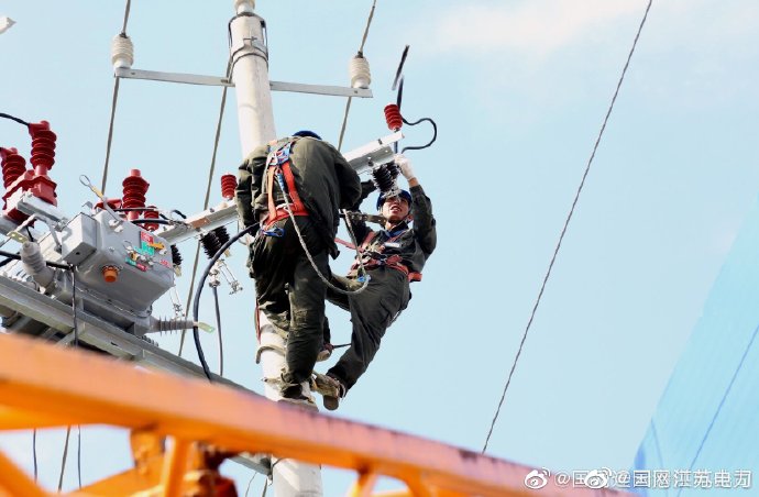 【改造農(nóng)網(wǎng) 清涼度夏】7月15日,國網(wǎng)灌云縣供電公司組織電力施工人員冒著室外高溫對該縣侍莊鄉(xiāng)喬圩村實施農(nóng)網(wǎng)改造升級,優(yōu)化該村農(nóng)網(wǎng)網(wǎng)架結(jié)構(gòu),持續(xù)提升農(nóng)村供電質(zhì)量,為該村200余戶村民清涼度夏用電提供堅強的電力保障。 ????
