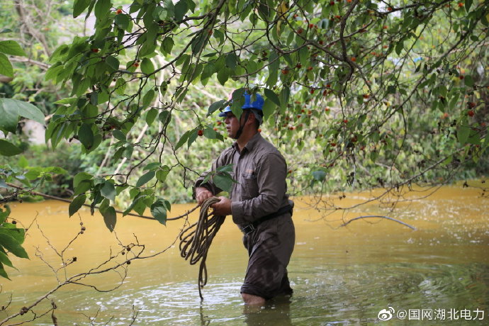 【趟水前進(jìn),只為小微企業(yè)用好電】7月19日,國網(wǎng)枝江市供電公司施工人員在問安鎮(zhèn)10千伏大竹園朱家灣4號臺區(qū)9號桿,為秦芳柑桔專業(yè)合作社進(jìn)行10千伏配電工程施工。在施工過程中,施工人員面對橫在眼前的稻田、果林、房屋和堰塘,越田、跨屋、鉆樹叢。在堰塘旁邊,為防止電纜進(jìn)水,他們更是用繩索系著電纜跳進(jìn)水中,小心翼翼地保護(hù)電纜越過堰塘和塘邊的灌木叢,只為小微企業(yè)能用好電。