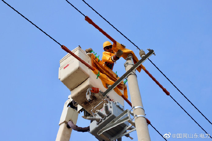 【高溫帶電作業(yè) 傳遞夏日清涼】7月24日,國(guó)網(wǎng)即墨市供電公司帶電作業(yè)人員對(duì)10千伏水泊線9號(hào)甲桿進(jìn)行直線桿改耐張桿并加裝隔離開(kāi)關(guān)工作。當(dāng)日天氣酷熱,工作人員穿著密閉絕緣服頂著烈日,進(jìn)行三個(gè)小時(shí)奮戰(zhàn),順利完成本次工作。