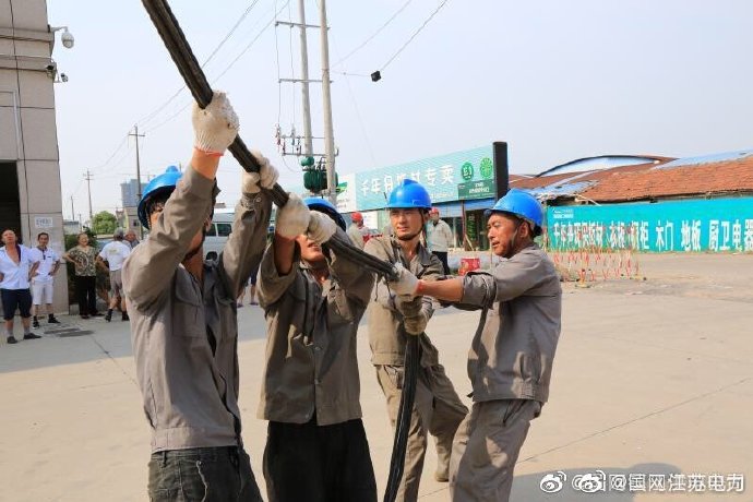 【冒高溫忙增容】7月25日,在丹陽市華東建材市場(chǎng)西側(cè)施工現(xiàn)場(chǎng),國網(wǎng)丹陽市供電公司施工人員冒高溫對(duì)10千伏西郊142線東風(fēng)村委配變進(jìn)行遷移增容,將原先容量為200千伏安的配變?cè)鋈葜?00千伏安,現(xiàn)場(chǎng)新立2基電桿,保障了東風(fēng)新村居民夏季可靠用電。 ????