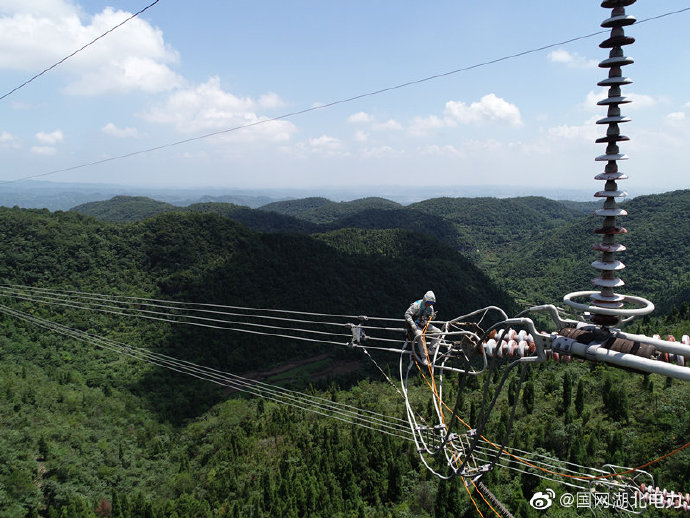 【守護清涼,蕩起“秋千”】7月24日,國網(wǎng)湖北檢修公司宜昌運維分部員工在500千伏三龍二回88號桿塔,開展帶電作業(yè)消除線路避雷器的安全隱患。作業(yè)人員在30多米的高空借助絕緣軟梯,像蕩“秋千”般擺入帶電的導(dǎo)線上進行修復(fù)作業(yè)。為了確保迎峰度夏期間三峽電力外送線路的安全穩(wěn)定運行,這樣的作業(yè)我們還將繼續(xù)!