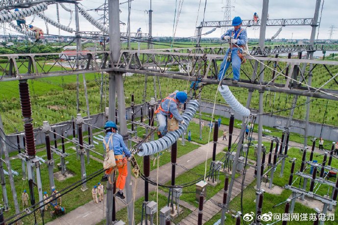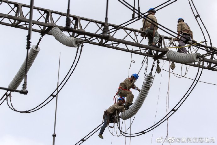 8月4日,泰州供電公司工作人員在220千伏黃橋變電站更換絕緣子串。為確保黃橋古鎮(zhèn)工農業(yè)生產可靠用電,8月4日-5日,該公司組織150人分成10個小組進行黃橋大會戰(zhàn),對220千伏黃橋變電站全站1號主變、2號主變采取零時至夜里12時隔日輪停方式進行停電檢修升級改造。 ????