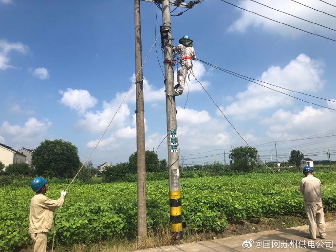 8月6日上午,國網(wǎng)蘇州市吳江區(qū)供電公司松陵供電所搶修人員在新營1號變拆除存在安全隱患的廢舊線路。拆除廢舊線路工作可消除老舊跨越線路的安全隱患,避免線路退役后,長期無人運(yùn)行維護(hù)引發(fā)的倒桿、電線事故,有效保障了其它電力線路的安全運(yùn)行和行人人身安全。