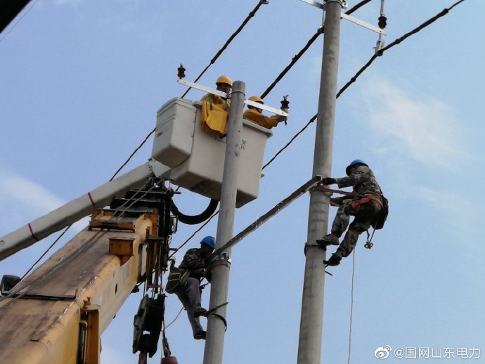 【帶電立桿作業(yè) 保障居民用電】8月22日,國網(wǎng)龍口市供電公司帶電作業(yè)班工作人員在10千伏遲家線49號(hào)桿至50號(hào)桿之間帶電立桿,并架設(shè)一臺(tái)200千伏安變壓器,有效解決了配變?nèi)萘坎蛔愕膯栴},提升了供電可靠性,實(shí)現(xiàn)了臺(tái)區(qū)居民用電“零影響”。 ????