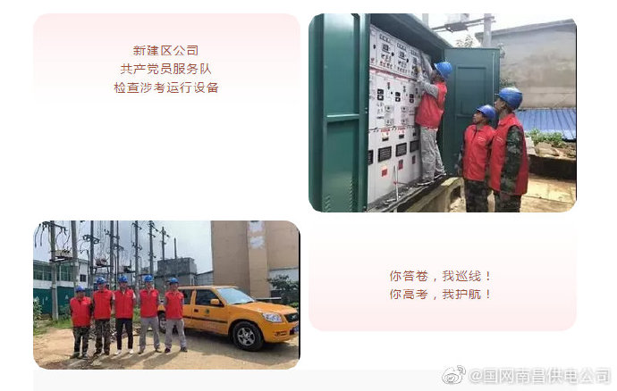 為順利完成2019年的高考保電任務(wù),確保高考期間各考點(diǎn)的安全可靠供電,給莘莘學(xué)子們提供良好的考試環(huán)境,國(guó)網(wǎng)南昌供電公司出臺(tái)高考保電預(yù)案,成立高考保電工作小組,明確保障措施要求,出動(dòng)20支共產(chǎn)黨員服務(wù)隊(duì)共計(jì)300余人,特巡涉考變電站、運(yùn)行線(xiàn)路及設(shè)備,發(fā)電車(chē)進(jìn)駐高考點(diǎn),為高考學(xué)子,保電護(hù)航。
