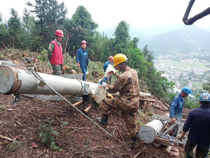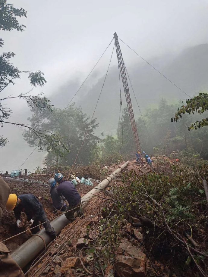 6月18日,在婁底市新化爐35kV線路工程施工現(xiàn)場,來自婁底供電公司星源電建集團輸變電分公司的十多名施工人員在深山里有序開展4號電桿立桿工作,力保該工程按期完成。