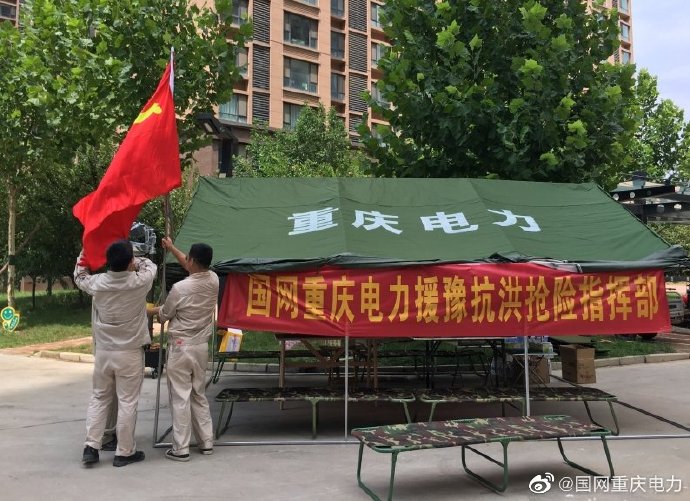 【搭起帳篷安營(yíng)扎寨 他們說(shuō):不通電就不撤退】7月27日,完成鄭州濱河花園小區(qū)復(fù)電工作后,國(guó)網(wǎng)重慶援豫抗洪救災(zāi)紅巖共產(chǎn)黨員服務(wù)隊(duì)來(lái)到河南大學(xué)明德園小區(qū)開(kāi)展搶險(xiǎn)保供電工作,他們搭起一頂頂帳篷安營(yíng)扎寨,服務(wù)隊(duì)長(zhǎng)范昭勇表示:“不通電,不撤退!” ????