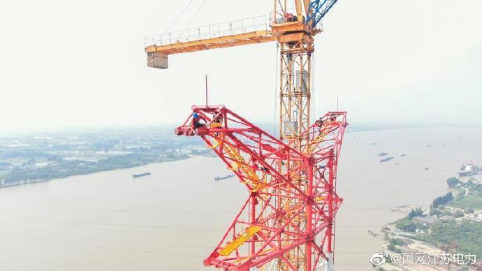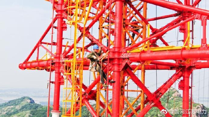 6月24日,在鎮(zhèn)江五峰山220千伏跨江升高改造工程南跨越塔舊塔爆破原址,江蘇省送變電有限公司施工人員正在162米的高空組裝新鐵塔。隨著最后一吊地線頂架完成組裝,標志著南跨越塔全部組裝完成。新建跨江輸電線路建設(shè)后將滿足現(xiàn)今長江干線5萬噸級海輪遠航凈高50米的要求,輸電能力也較原來提升3倍以上。