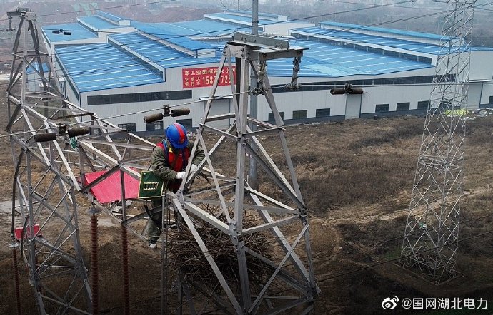 【勞模爬上鐵塔,隱患順利清除】1月16日,寒風凜冽,國網(wǎng)鄂州供電公司檢修分公司輸電帶電作業(yè)班長王志勇,手腳麻利地爬上了跨越武九鐵路的一座20余米的輸電線路鐵塔,小心翼翼地清理完塔上的鳥巢,確保輸電線路安全運行,進而保障春運期間鐵路交通安全通行。據(jù)了解,鄂州境內(nèi)共有126處輸電線路跨越鐵路、高速公路,目前已發(fā)現(xiàn)并處理各類隱患5起。