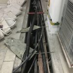 故障情況:因外部施工水管破裂,污水漫過擋水墻,浸至配電室電纜溝內(nèi),導(dǎo)致電纜溝內(nèi)電纜被水浸泡。故障原因:房屋建設(shè)總體規(guī)劃時(shí)未考慮擋水墻高度,在低處的配電室也未設(shè)置散水井。維護(hù)建議:預(yù)防水管破裂,配置抽水泵,對(duì)井內(nèi)電纜有中間頭部分進(jìn)行提高。