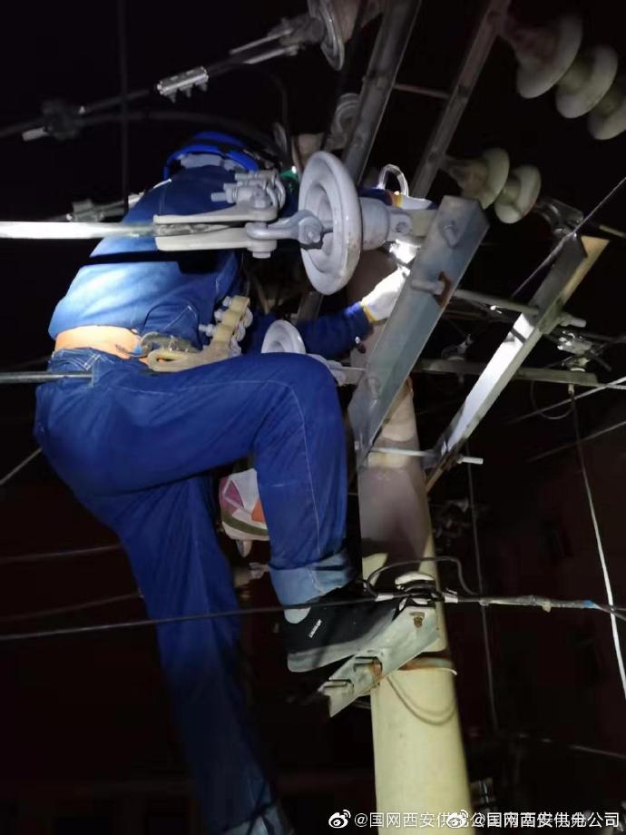 【上桿搶修超靈活】11月19日晚,三兆八臺區(qū)02號桿主線燒斷,市南供電分公司工作人員快速出動,及時處理供電,避免設(shè)備損壞和人身傷害。