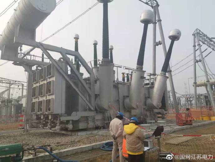 【主變退役 不忘體檢】1月13至14日,江蘇省送變電有限公司特殊試驗人員在南通500千伏三官殿變進行舊主變暫退役的局部放電試驗。原1號主變已經(jīng)為南通電網(wǎng)穩(wěn)定運行18年,現(xiàn)已不再滿足用電需求,工作人員不畏嚴寒,順利完成相關試驗 ????