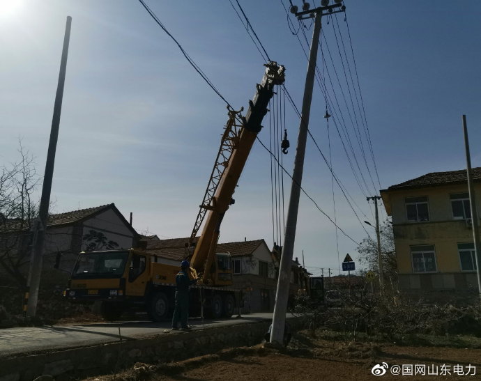 張格莊鎮(zhèn)電桿發(fā)生傾斜 緊急維修恢復