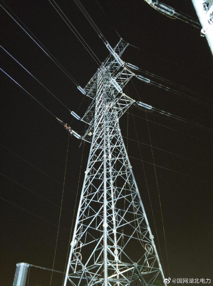 2020年5月20日深夜,武漢楊春湖畔,國(guó)網(wǎng)湖北送變電工程有限公司施工人員正在進(jìn)行220kV鋼桂一回13-D1號(hào)導(dǎo)地線(xiàn)更換工作,本次施工需跨越武漢站北出站口12條軌道,更換4基桿塔348米下相導(dǎo)線(xiàn)。至21日凌晨3點(diǎn)05分,送變電公司順利完成夜間跨越鐵路更換導(dǎo)線(xiàn)任務(wù)。他們抓住了“520”的尾巴,用汗水和堅(jiān)守對(duì)所鐘愛(ài)的城市“告白”,助力武漢建設(shè)發(fā)展。