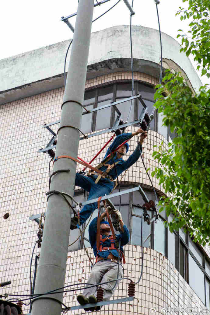 6月9日上午7時,在常州金壇區(qū)老城區(qū)西門大街、社橋村等處,供電公司員工對10千伏社橋線、西門線、文翠線開展線路修理工作,更換老舊電桿、柱上開關(guān)、配變刀閘熔斷器,增大導(dǎo)線截面積,增加導(dǎo)電容量,提高供電可靠性。為減少停電和近期炎熱天氣的影響,供電員工上午6時30分即來到現(xiàn)場開展作業(yè)準備工作,保電一線 安全先行?力爭中午之前完成工作恢復(fù)送電。