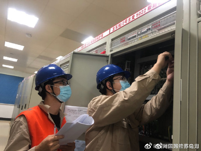 9月3日,在500千伏龍王山變電站,國網(wǎng)江蘇檢修公司變電中心二次一班人員進行龍東5261線路保護校驗工作。檢修人員對屏內(nèi)端子排進行螺絲緊。