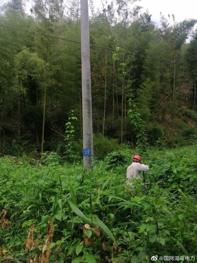 巡視、砍青、消缺……光明的背后,是電力蜀黍的辛勞和堅守。9月11日上午,國網耒陽市供電公司黃市供電所的配電運行員梁飛正在清理10千伏黃陶線#1050號桿通道內的藤蔓和樹障,讓配網線路輕裝上陣。(彭流久)