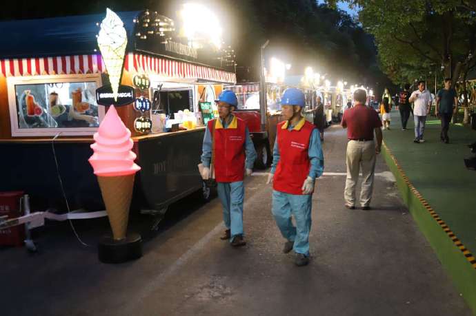 國網(wǎng)寧波市鄞州區(qū)供電公司來到夜貓子夜市進行用電量檢查工作