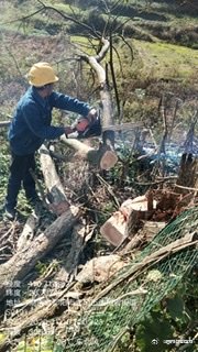 10千伏法高線新澤村火巖上臺區(qū)進(jìn)行低壓線路砍青掃障工作