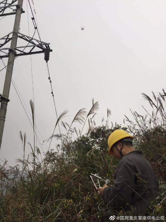 【秋安秋檢】11月18日,國網(wǎng)重慶綦南供電公司工作人員對(duì)輸電線路開展無人機(jī)巡檢 ????。