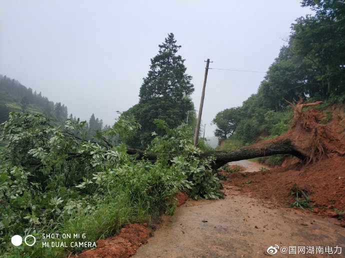 湖南連續(xù)遭遇暴雨天氣,導(dǎo)致山體滑坡,百年大樹被連根拔起壓斷電力線路,國網(wǎng)新寧電力公司馬上組織員工進(jìn)行搶修,保證電力供應(yīng)。