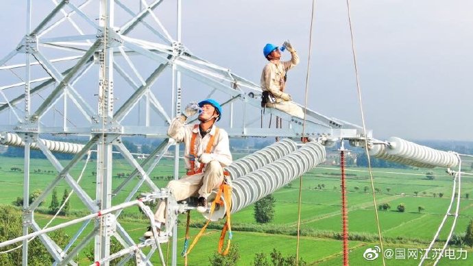 【烈日“烤”驗 電力人揮汗如雨】7月24日,江蘇全省開啟了“燒烤”模式,各個電力工地都仿佛被籠罩在火爐里一樣。在江蘇高郵220千伏秦郵至高郵牽引站線路工程現(xiàn)場,江蘇省送變電有限公司施工人員正在頂著40℃的高溫加緊施工,為電網建設揮灑汗水。該線路是連淮揚鎮(zhèn)高鐵高郵牽引站用電需要的重要配套線路,牽引站又被譽為高鐵牽引供電系統(tǒng)的“心臟”,建成后將保障高鐵列車安全、高速、可靠、穩(wěn)定運行。
