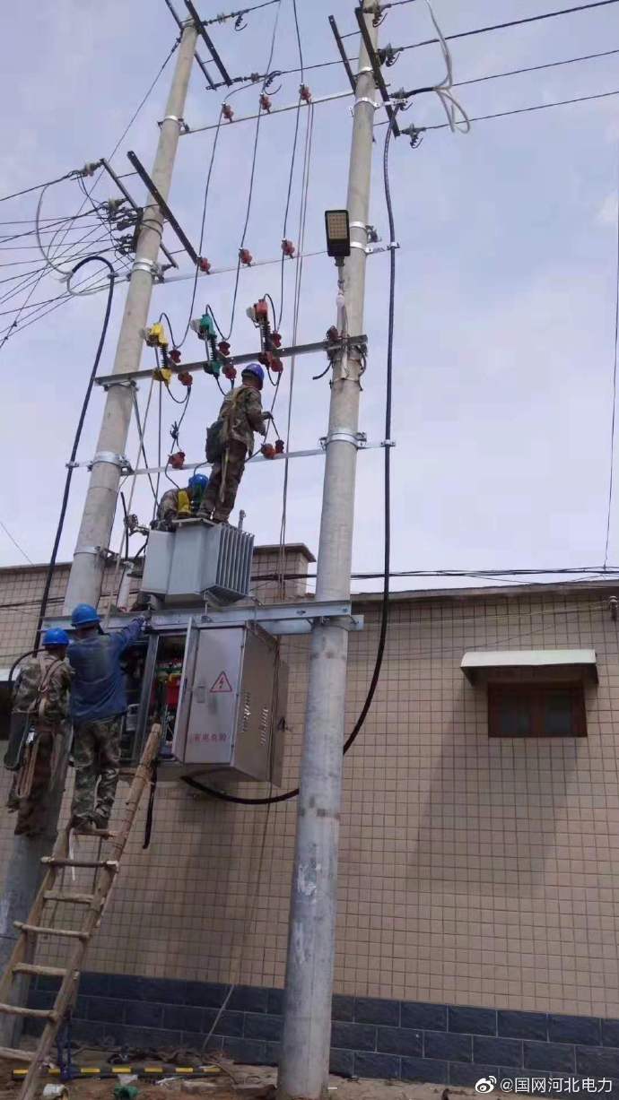 電力公司施工人員冒高溫現(xiàn)場安裝配變?cè)O(shè)備