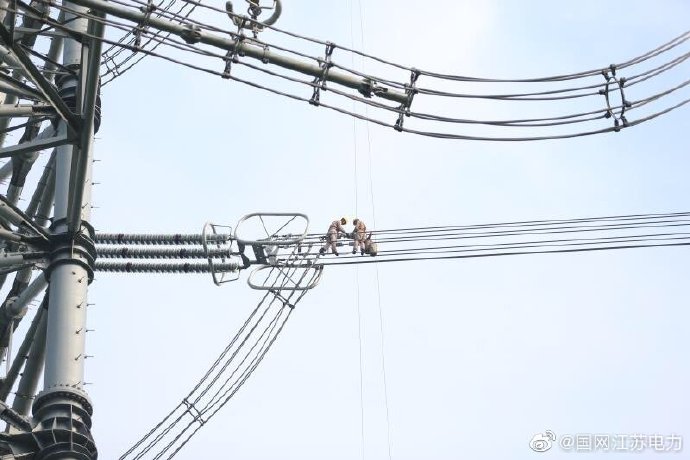 【戰(zhàn)高溫 裝設(shè)備 保投運(yùn)】7月26日,江蘇省送變電有限公司特高壓運(yùn)檢分公司的工作人員克服高溫天氣影響,在1000千伏泰吳線上安裝輸電線路分布式故障診斷裝置,該裝置在輸電線路發(fā)生故障后能快速、準(zhǔn)確地找到故障點(diǎn)并正確判斷出故障類型,為長(zhǎng)江GIL管廊調(diào)試和1000千伏泰吳線投運(yùn)保駕護(hù)航 ????。