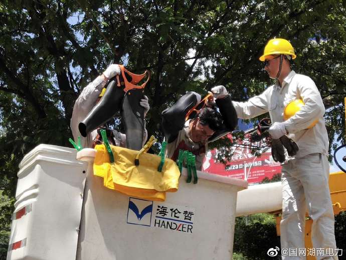 7月26日,室外氣溫高達(dá)40度,婁底公司“電駿馬”共產(chǎn)黨員服務(wù)隊(duì)在對(duì)城北I線23號(hào)桿進(jìn)行帶電更換隔離開關(guān),服務(wù)隊(duì)隊(duì)員在工作斗內(nèi)作業(yè),全身濕透,衣服如水洗過(guò)一般,脫下的衣服、手套都可以擠出水來(lái)。